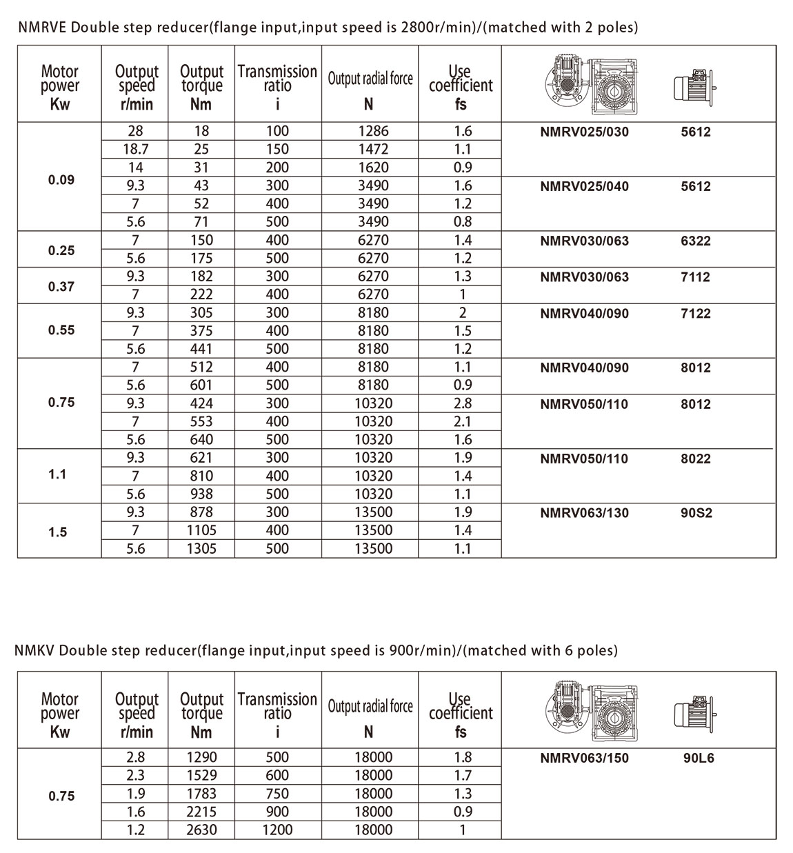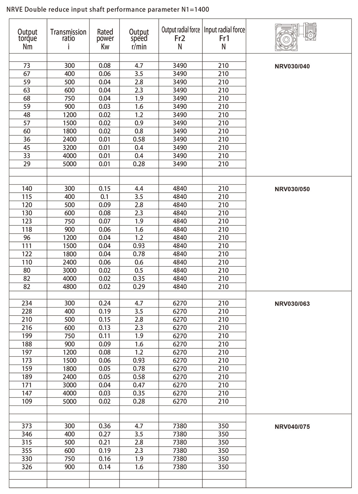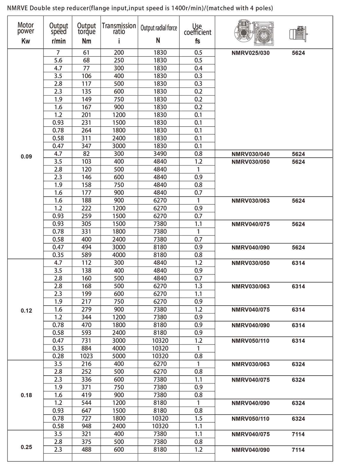 NMRVE Input speed performance of flanges