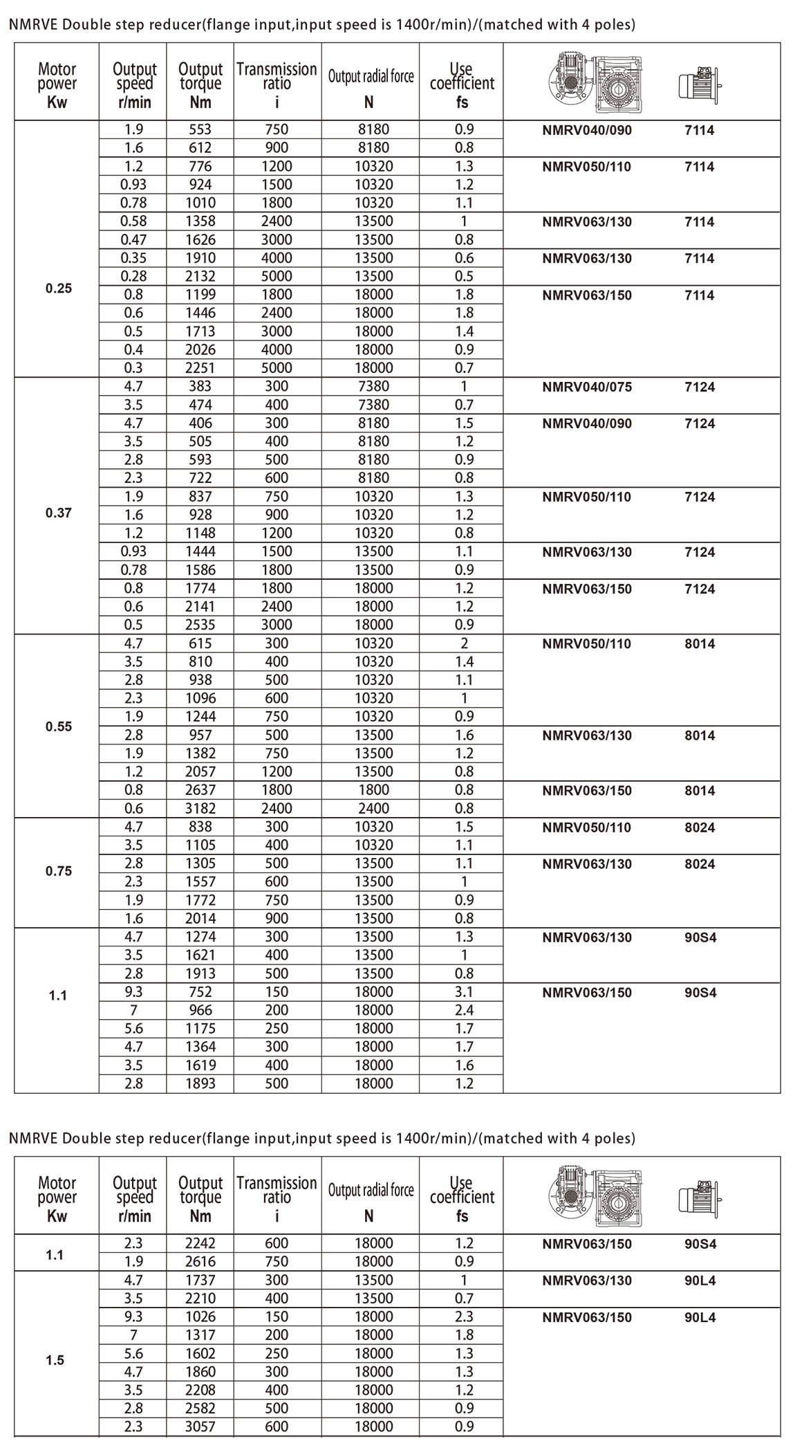 NMRVE Input speed performance of flanges